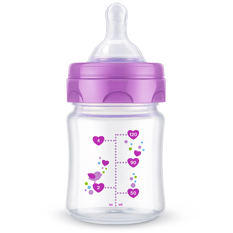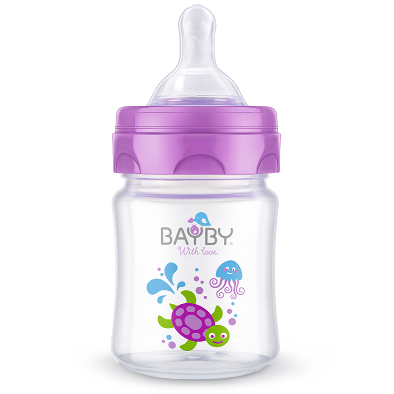 Anti-colic baby bottle - plastic. The silicone nipple is made from